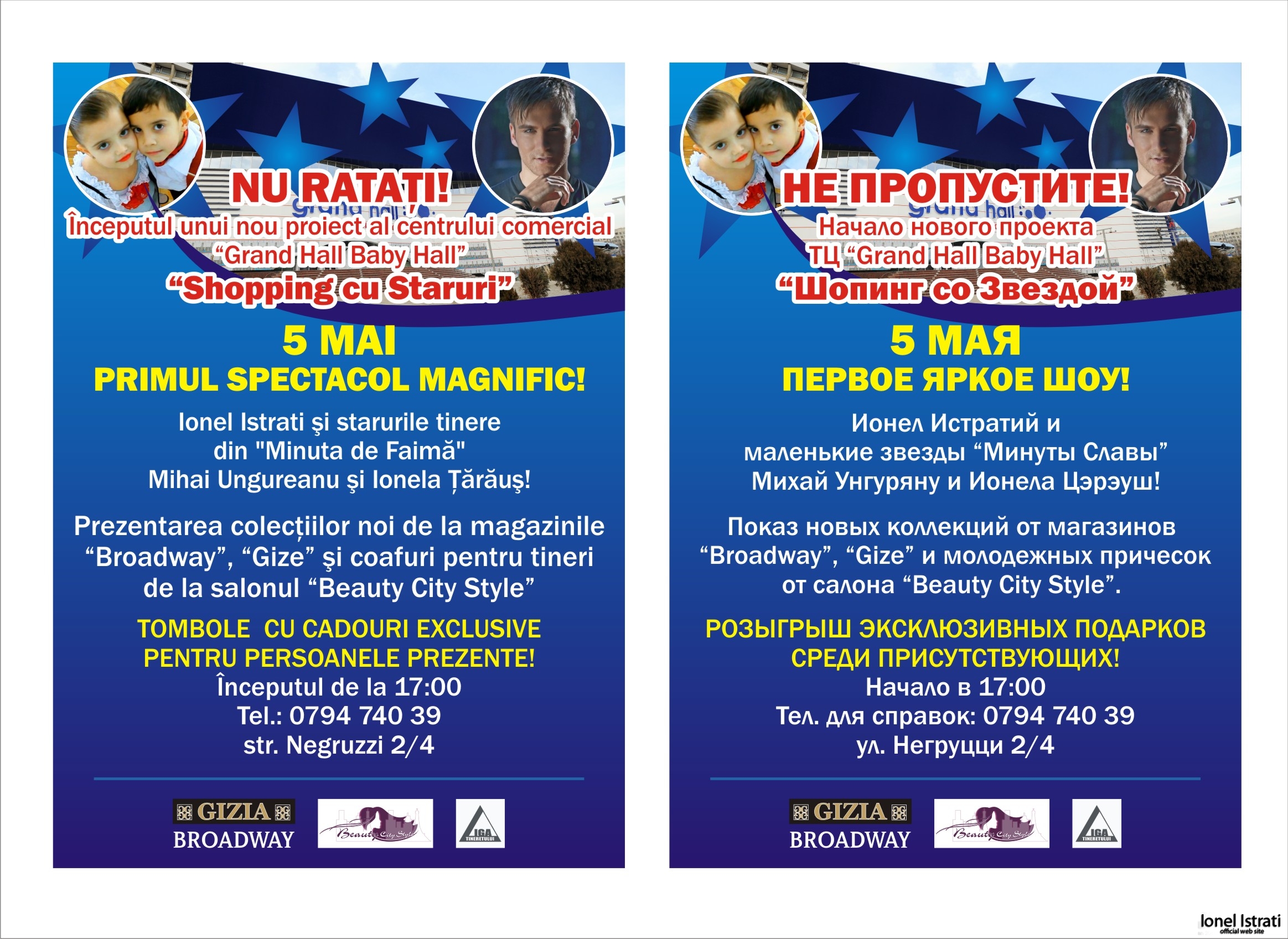 05 mai ora 17:00 or. Chisinau "Проект: Шопинг со Звездой" (Grang Hall, Baby Hall)