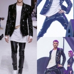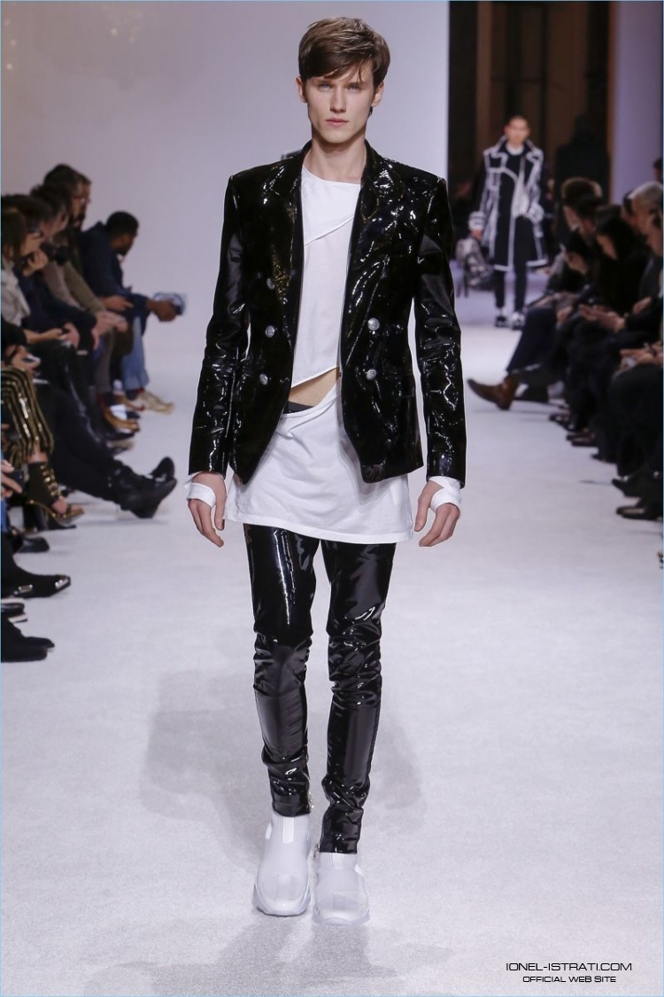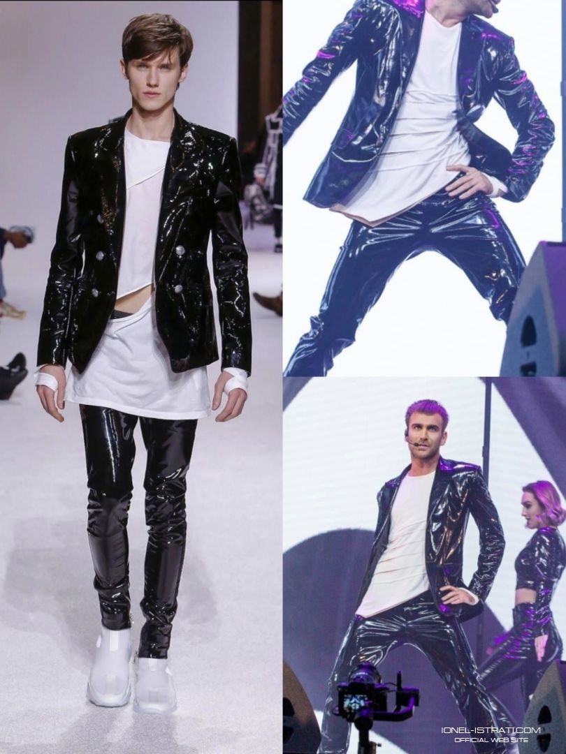 Ionel nu a ezitat să apară pe scenă într-un costum din latex negru, marca Balmain Autumn.