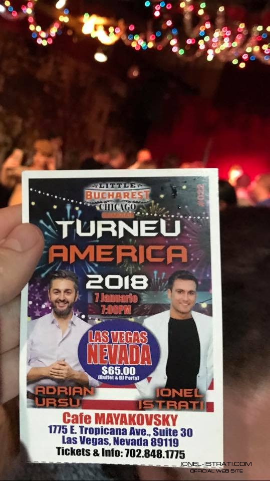 În noaptea dintre ani, interpreții au avut un concert în oraşul Chicago, la fel și mâine, 11 ianuarie. În data de 12 ianuarie cei doi vor ajunge la New York, după care, vor pleca în orașele Baltimore şi Orlando, pe 13 și, respectiv, 14 ianuarie, pentru a bucura moldovenii de-acolo.
